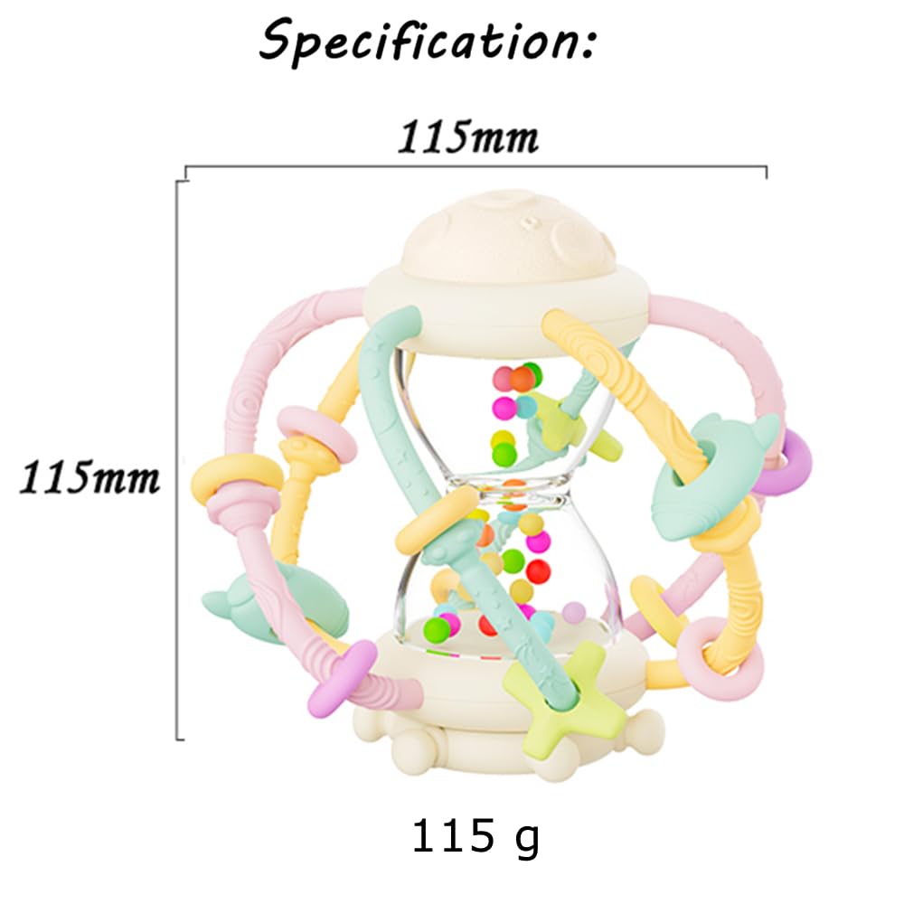 - Our baby teething toy features soft silicone rings and a gentle rattle sound that provides a fun and soothing experience for your little one. It is suitable for babies aged 3+ months to grasp and chew easily, to help the baby’s sensory development and meet the needs of the baby’s teething period.
